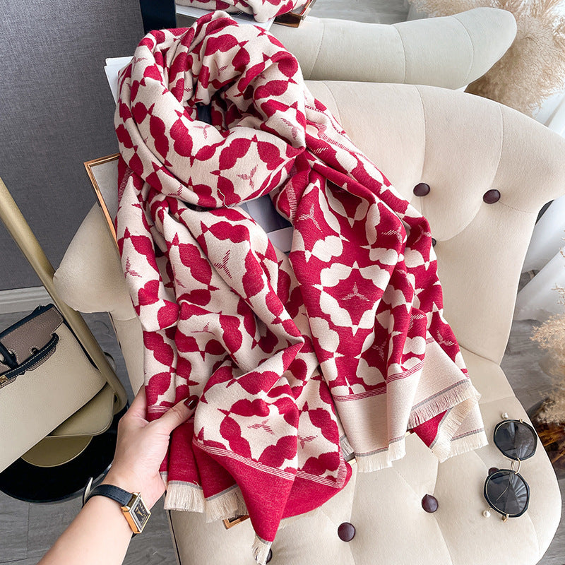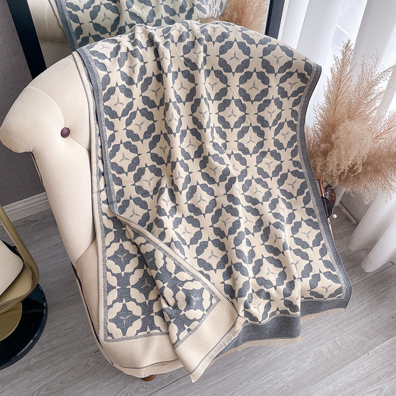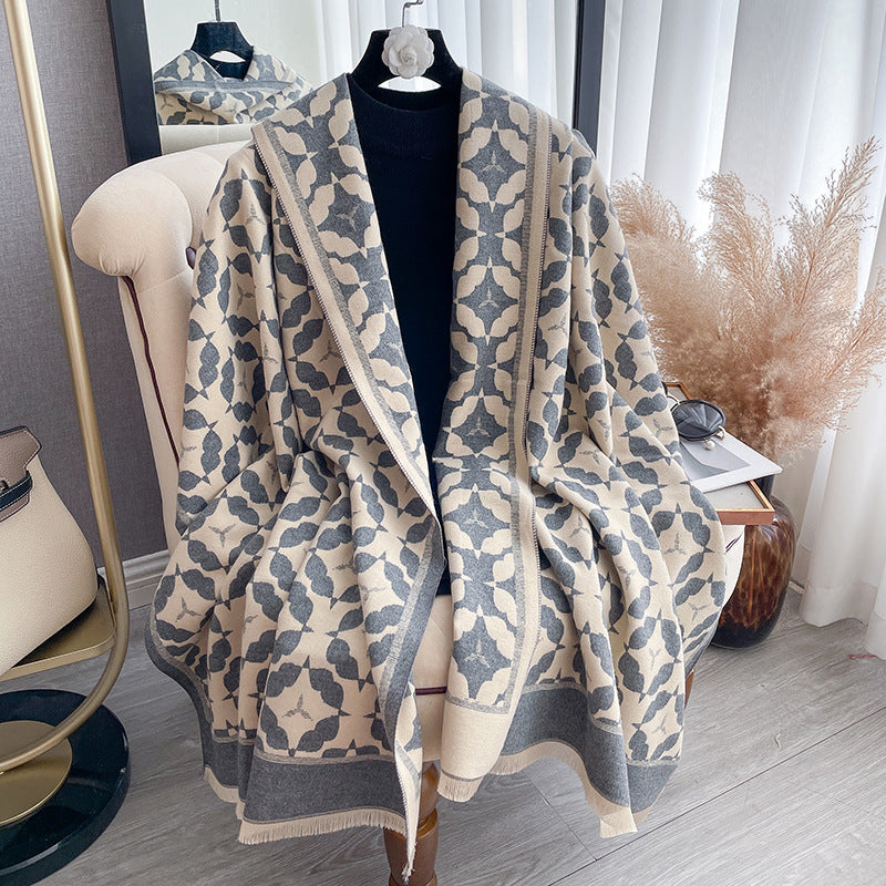 Son motif graphique sophistiqué apporte une touche de caractère et d’originalité à votre look. Les lignes harmonieuses et les formes délicates créent un contraste visuel unique, idéal pour celles qui aiment allier modernité et élégance. Ce châle se marie aussi bien avec une tenue décontractée qu’avec un style plus habillé, ajoutant instantanément une note distinguée.
